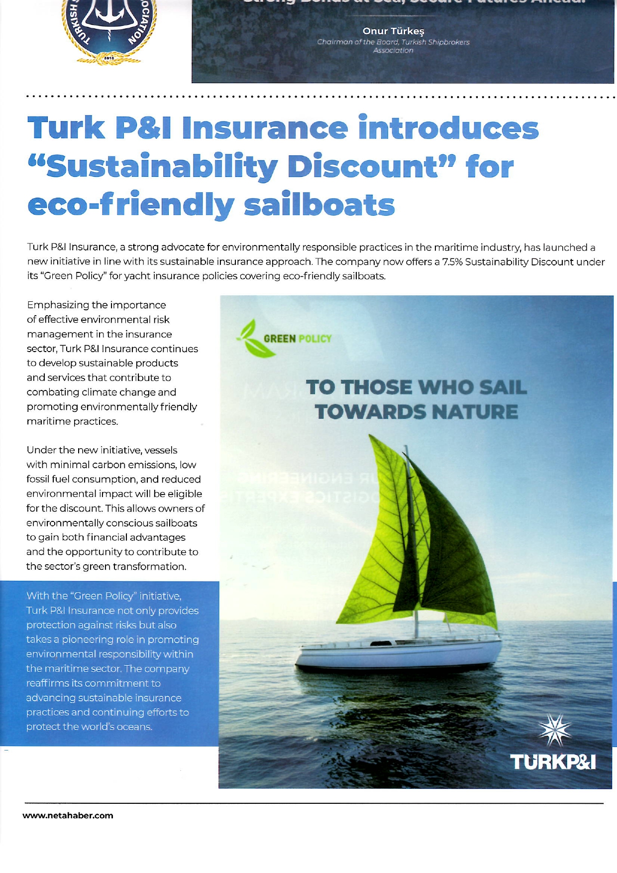 Basında Türk P&I Neta Sea / Devamı için > > Sea Business World Eylül-Ekim Devamı için > > Business Diplomacy - May/June Devamı için > > Türklim - Ocak/Şubat/Mart Devamı için > > SeaNews - Mart Devamı için > > Deniz Ticareti - Mart Devamı için > > Neta Sea - Ocak/Şubat Devamı için > > Yat Haber Türkiye-Ocak/Şubat Devamı için > > Yat Haber Türkiye-İngilizce Ocak/Şubat Devamı için > >